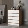 Elina Şifonyer 4 Çekmece - Dore/Beyaz, modern ve şık tasarımıyla yaşam alanlarınıza hem estetik hem de fonksiyonel bir dokunuş katar. Beyaz ve dore renk kombinasyonu, odanıza aydınlık ve zarif bir görünüm kazandırırken farklı dekorasyon stilleriyle uyum sağlar.