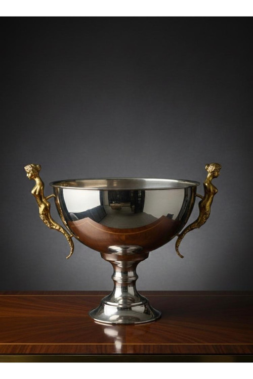 Geniş ölçüsü ve etkileyici formuyla öne çıkan 50 cm büyük boy gümüş gondol, sunum ve dekorasyonlarda güçlü bir görünüm sunar.