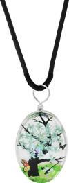 Tesbihane Elips Tasarım Beyaz Çiçekli Doğa Temalı El Yapımı Natural Reçine Kolye