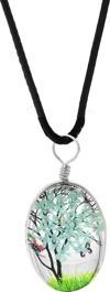 Elips Tasarım Beyaz Çiçekli Doğa Temalı El Yapımı Natural Reçine Kolye