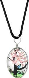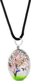 Elips Tasarım Pembe Çiçekli Doğa Temalı El Yapımı Natural Reçine Kolye