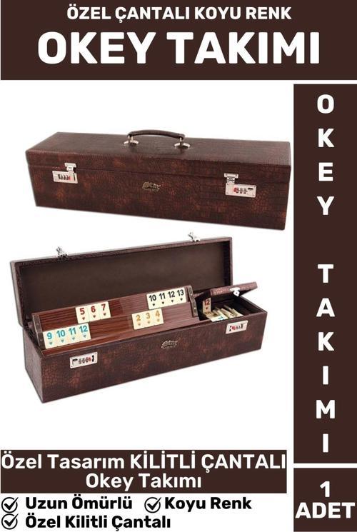 - Özel Üretim ELİT SERİ Yüksek Kaliteli Kilitli Taşıma Çantalı KOYU RENK Okey Takımı
