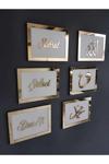 Elite Lazer 3D Sabret Şükret Dua Et Allah Muhammed Vav 6'Lı Tablo Set (20*13) Gold / Beyaz Bilazertasarım