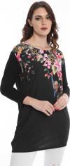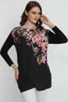 Detay: Uzun kollu, yuvarlak yaka, çiçek desenli uzun bluz;