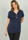 Ella Camelia Kadın Fermuarlı Kısa Kol Bluz 20E038 Lacivert