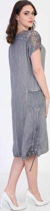 Detay: Omuzları dantelli, etek kısmı ip detaylı elbise;