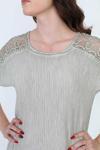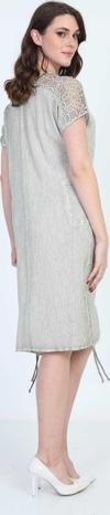 Detay: Omuzları dantelli, etek kısmı ip detaylı elbise;