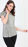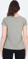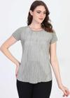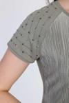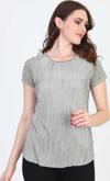 Detay: Kısa kollu, yuvarlak yaka, omzu taş detaylı, desenli bluz;
