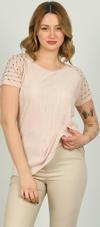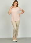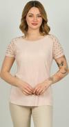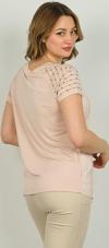 Detay: Kısa kollu, yuvarlak yaka, omzu taş detaylı, desenli bluz;
