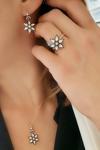 Elmas İşçiliği 925ayar Gümüş Üzerine Rose Altın Kaplama Çiçek Takım