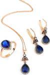 Ose Shop Elmas İşçiliği Lacivert Zirkon Taşlı 925Ayar Gümüş Üzerine Rose Altın Kaplama Damla Set Takım