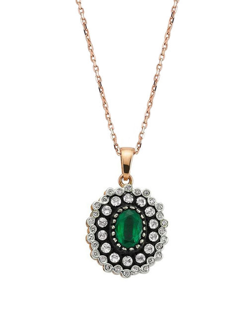 Klasik ürünlerin dışında hem elmas hem de pırlanta kullanarak pembe altın ( rose gold ) ile ürettiğimiz; Elmas Pırlanta ile Oval Zümrüt Kolye 'mizde çok fazla karartma ve kaplama kullanmadık. Gün içinde veya özel bir günde de kullanabileceğiniz kadar özgür bir kolye.