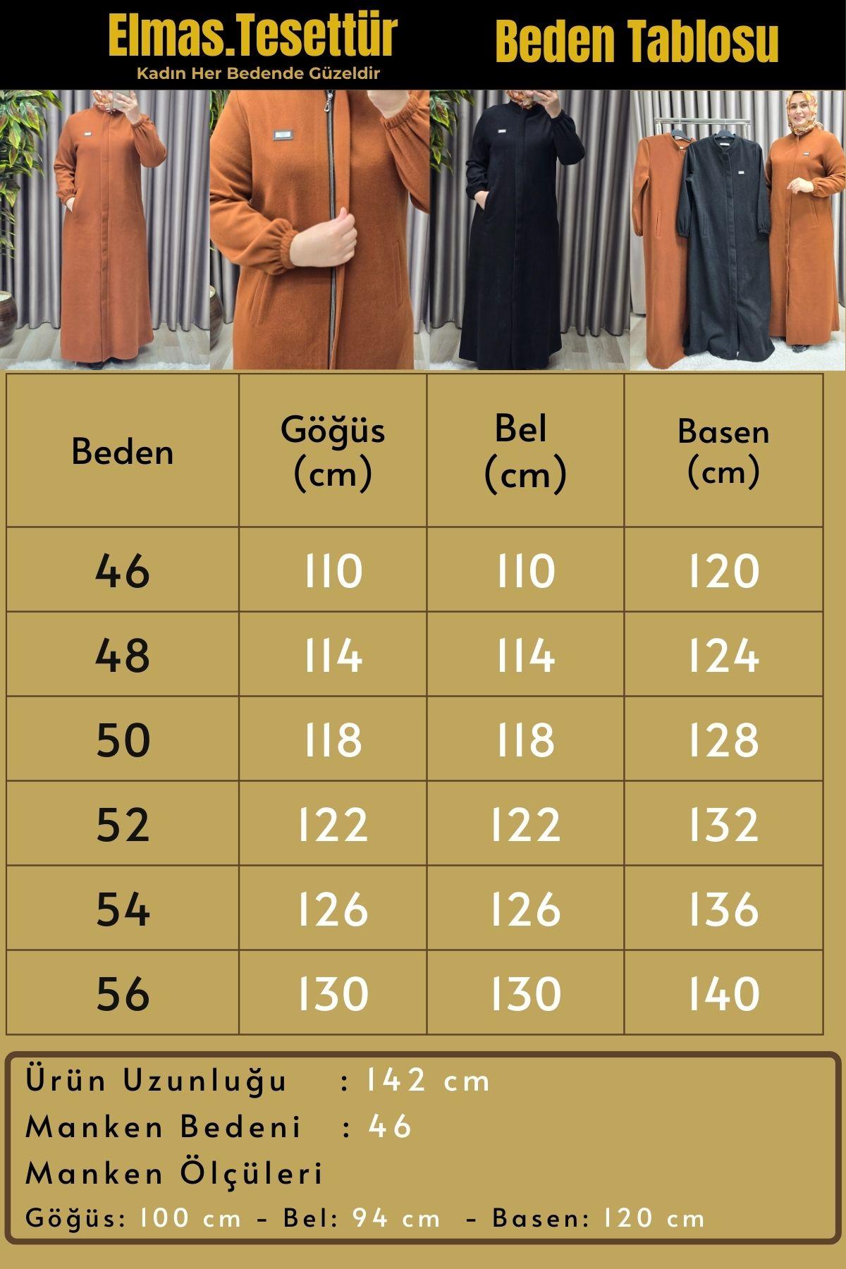 Elmas Tesettür Kadın Giyim Büyük Beden Kapşonsuz Yumuşak Kaşe Tam Boy Kaban