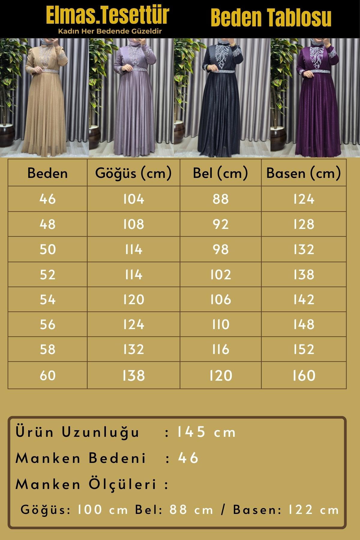 Elmas Tesettür Kadın Tesettür Giyim Büyük Beden V Taşlı Abiye