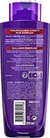 Elseve Turunculaşma Karşıtı Mor Şampuan, mor renklendiriciler ve UV filtresi içeren formülü ile karşıt tonları nötralize eder ve saçlardaki istenmeyen turuncu, sarı renkteki yansımalara karşı savaşır. İlk kullanımdan itibaren etkisini göstermeye başlar.