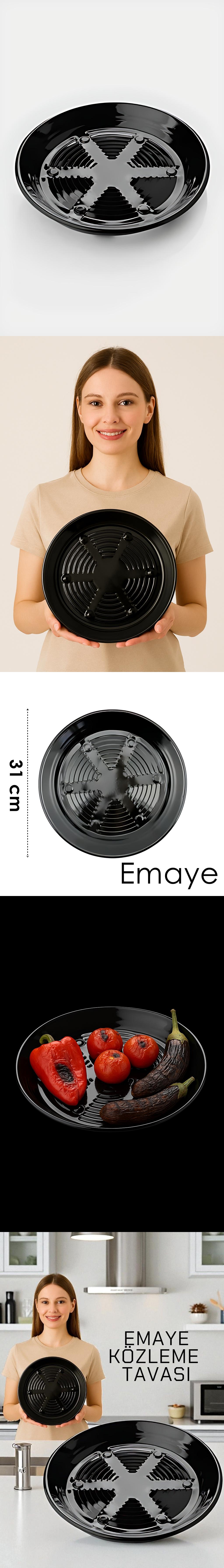 Modern mutfaklar için tasarlanmış bu emaye közleme tavası, hem estetik hem de işlevsel yapısıyla dikkat çeker.