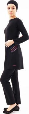 Ürün:Bone,eşarp,üst,tayt(likralı),iç bikini olmak üzere beş parçadan oluşmaktadır. ithal mayo kumaşıdır full likralı üründür.