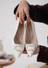 Etiler Collection'un zarif tasarımıyla öne çıkan bu beyaz topuklu ayakkabı, şıklığı ve konforu bir arada sunar.