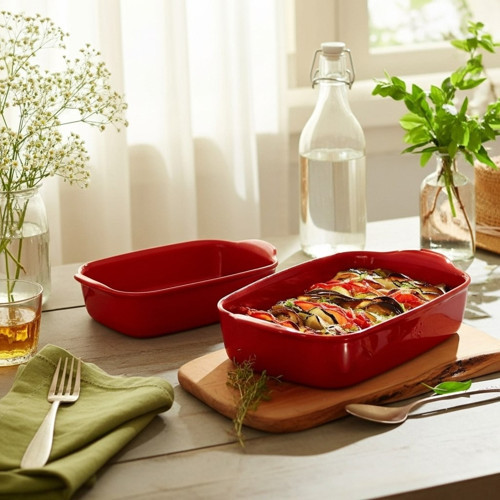 Bu setteki iki dikdörtgen Emile Henry fırın kabı, graten, musakka, fırında veya doldurulmuş sebzeler için mükemmeldir, ancak neredeyse her türlü yemek için de uygundur. Set, 295 x 190 mm ve 365 x 235 mm ölçülerinde iki kap içerir, böylece her zaman doğru boyutta bir kap elinizin altında olur.