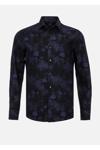Emilio Çiçek Desenli Denim Gömlek %100 Pamuk