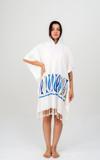 Viskon Baskılı Kapşonlu Panço - Mavi Balık