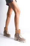 Joy Ayakkabı EMMA Bağcıklı Fermuarlı Ortopedik Taban Topuklu Kürk Detaylı Süet Kadın Bot STT - Ten