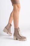 Joy Ayakkabı EMMA Bağcıklı Fermuarlı Ortopedik Taban Topuklu Süet Kadın Bot STT - Ten