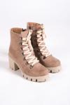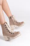 EMMA Bağcıklı Fermuarlı Ortopedik Taban Topuklu Süet Kadın Bot  STT - Ten
