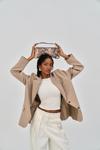 Bolivente Taş Rengi Kadın Düğmeli Oversize Blazer Ceket