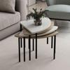 Sağlam metal bacaklarıyla modern bir duruş sergileyen bu sehpa seti, dört kişinin konforlu kullanımına olanak tanır. Hem işlevsel hem de şık olan bu tasarım, evinizin her köşesine uyum sağlayacak pratik bir çözümdür.