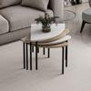 Emma Zigonlu Orta Sehpa- Senza/ Beyaz Dört çeyrek parçadan oluşan ve birleştirildiğinde şık bir daire formu yaratan bu modüler orta sehpa seti, kullanım kolaylığı ve estetiği bir arada sunar. Parçalar ayrı ayrı yerleştirildiğinde alan tasarrufu sağlar ve farklı oturma düzenlerine uyum gösterir.
