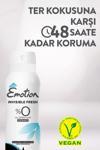 | Emotion Invisible Fresh Alüminyum içermeyen ve vücudun terleme dengesini etkilemeden 48 saat koruma sağlayan formülü ile siyahlarda iz ve beyazlarda leke bırakmaz. Fresh kokusu ile taze hissetmenizi sağlar. |