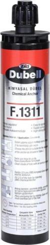 EMS F.1311 Epoksi Kimyasal Dübel 300 ml EMS Dubell F. 1311 KİMYASAL DÜBEL Beton, taş, tuğla vb. sert ya da boşluklu yüzeyler için geliştirilmiştir. İki bileşenli, geliştirilmiş polyester reçine esaslı, kolay uygulanabilen, hızlı kuruyan, yüksek mukavemetli bir üründür. Tiksotropiktir, sarkma ve düşme yapmaz, yatay ve düşey uygulamalar için ideal bir üründür.