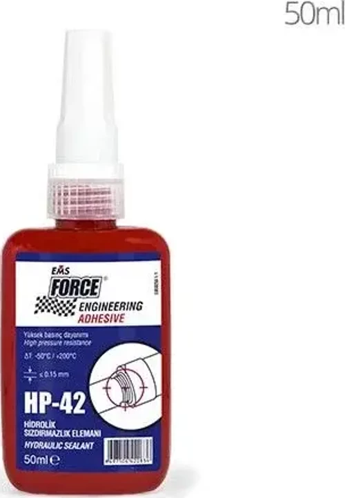 EMS FORCE® HP-42, düşük viskoziteli boru sızdırmazlık maddesidir ve kolayca hidrolik ve pnömatikte kullanılan uygulamalı anaerobik ürün 50 mm çapa kadar bağlantı parçaları ve servomekanizmalarda kullanılır. Tamamen kürlendiğinde çekme yapmaz. Büyük direnç gösterir yüksek basınca, titreşime, solventlere, 150°C'ye kadar ısıya, nem ve korozyona dayanıklıdır.