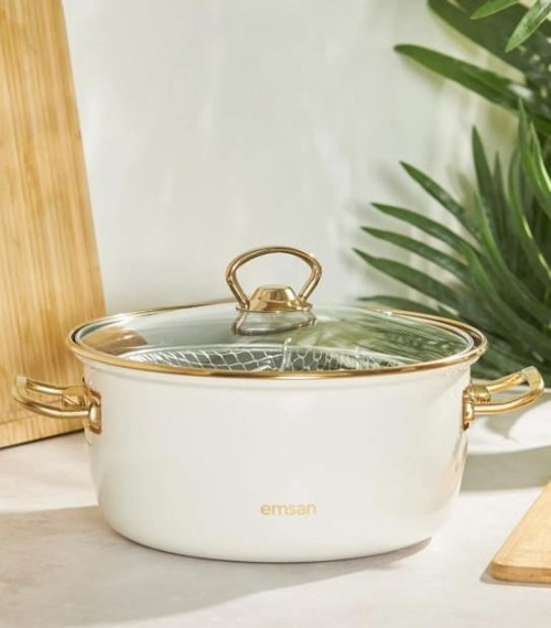 Emsan Retro Bej 24cm Emaye Kızartma Tenceresi