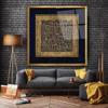 Harikabirev Lacivert - Gümüş Soyut Desenli Model Çerçeveli Temperli Cam Tablo Tekli Yatay - Image 1