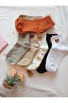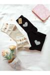 Enefendi 2 Çift Dikişsiz Soket Çorabı Yumuşak Kadın Siyah(Bambu Simli Kalpli) Krem(Pamuk) Çorap 36-40