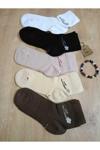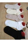 Enefendi 2 Çift Gül Love Taşlı Pamuklu Burun Dikişsiz Kokulu Kısa Konç Çorap Krem Siyah Kadın Çorabı 36-40