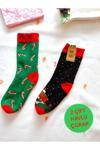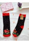 Enefendi 2 Çift Termal Soket Yılbaşı Havlu Yumuşak Hediye Kışlık Kadın Çorabı Yeşil Siyah Çorap 36-40