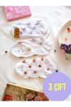 Enefendi 3 Çift Pamuklu Patik Çorap Dikişsiz Kısa Konç Desenli Kadın Çorabı 36-40 Mor Mavi Beyaz Kahve
