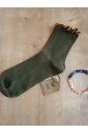 - Jakarlı desenleriyle göz alıcı bir görünüm sunan bu çorap, şıklığınızı tamamlar.