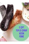 Enefendi Tüylü Çorap 2 Çift Kışlık Termal Patik Erkek Kadın Dikişsiz Ev-Parti Çorabı Vizon Füme 36-41.