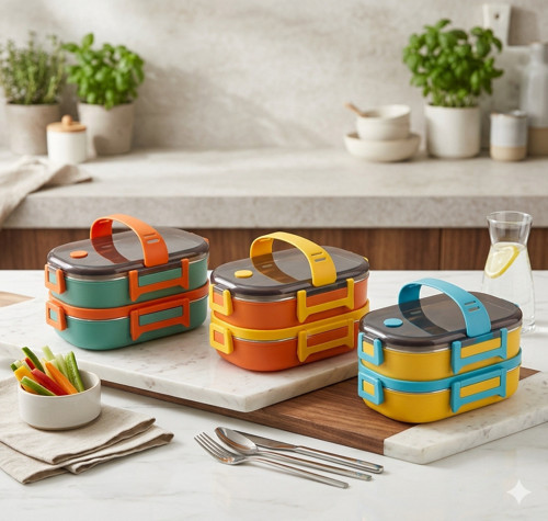 Enfa 2 Katlı Çelik Lunch Box Yemek Taşıma Kabı – Sızdırmaz Kilitli, Taşıma Saplı Pratik Beslenme Kutusu