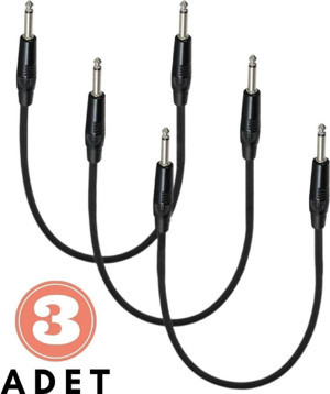 Erga Müzik Pedal Bağlantı Kablosu Efekt Pedal Ara Kablosu Siyah Çift Jaklı Düz/Düz 3 ADET