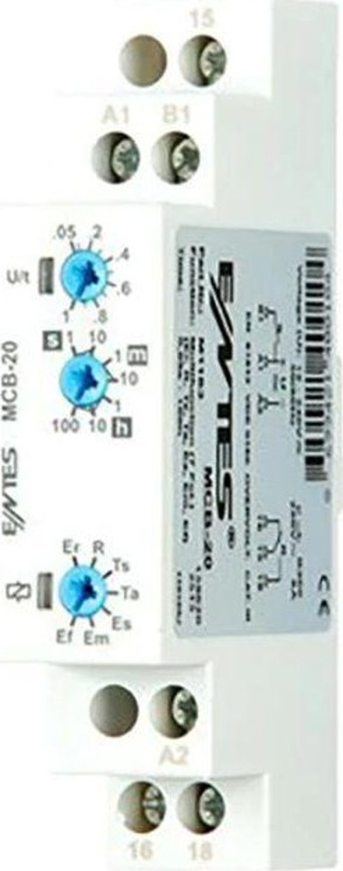 Entes MCB-20 (Ürün Kodu: M4897), çok fonksiyonlu zaman rölesi formunda tasarlanmış, 0,05 saniye – 100 saat aralığında ayarlanabilir geniş zamanlama yeteneğine sahip bir elektronik zaman rölesi (timer relay)’dir. Endüstriyel, ticari ve pano içi zaman kontrol uygulamalarında yaygın şekilde kullanılır.