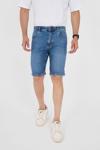 Rahat ve şık bir görünüm için tasarlanmış, %100 pamuklu denim kumaştan üretilmiş slim fit şort