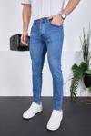 Günlük kullanıma uygun, açık mavi renkli likralı denim skinny fit jeans, esnek yapısıyla konforlu bir kullanım sunar.
