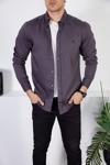 Klasik ve zamansız bir tarz sunan düz desenli erkek slim fit kot gömlek, günlük kullanım için idealdir