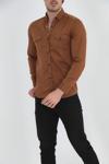 Her yaş grubuna hitap eden, zamansız tasarımıyla dikkat çeken düz renkli erkek slim fit kot gömlek