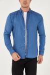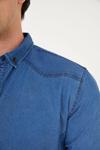 Şık ve modern tasarımıyla dikkat çeken bu erkek yıkamalı kot gömlek, düz deseni ve buz mavisi rengiyle her ortamda stilinizi tamamlar.